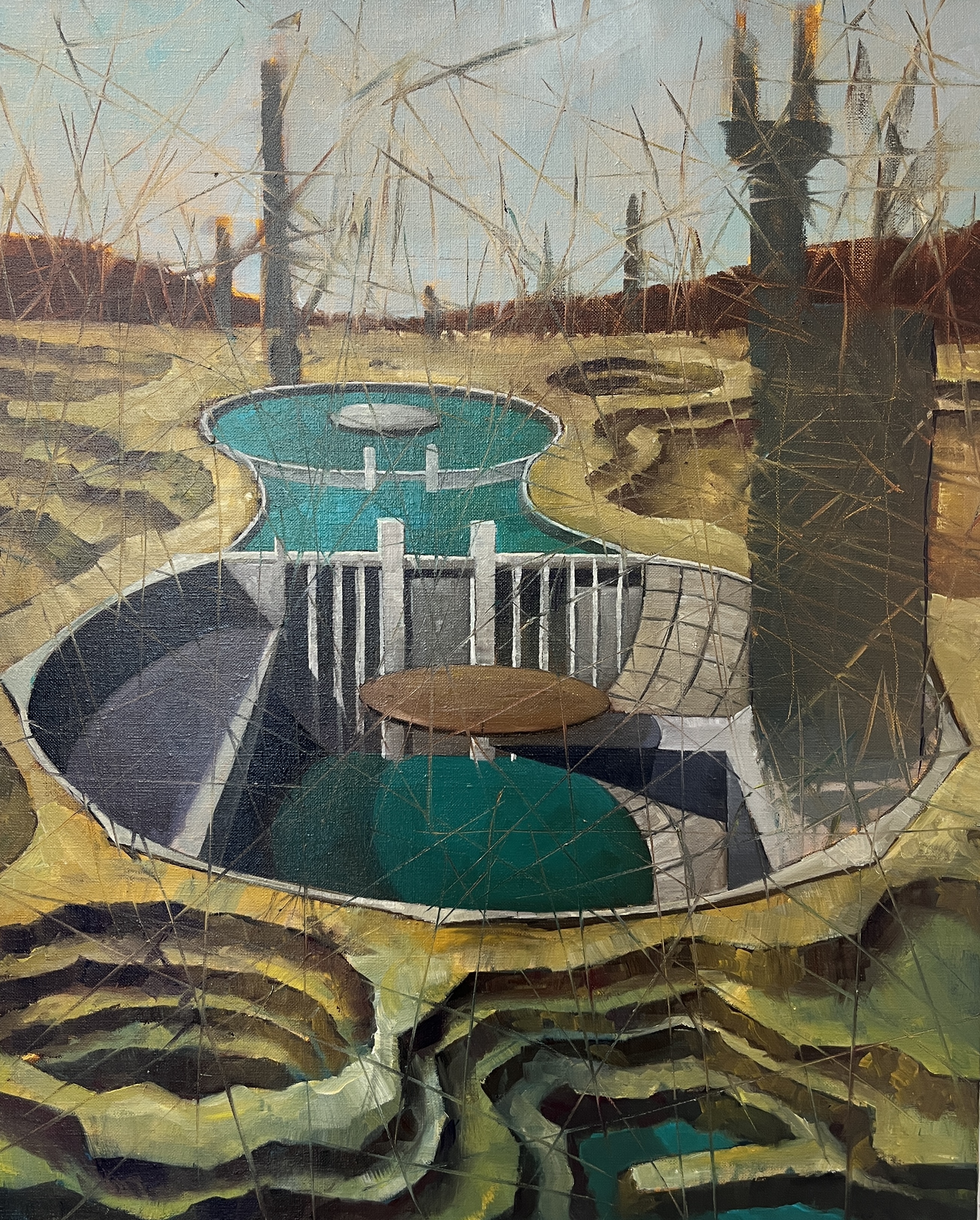 実技二日目の油彩の課題文は、“間”を描きなさい。でした。この日はとにかく眠気が酷く、座りながらこっくりこっくりと船を漕いでしまう程でした(今思うと試験本番になんてことを…恐ろしいです)。そこで夢と現実の“間”を描くことにしました。
